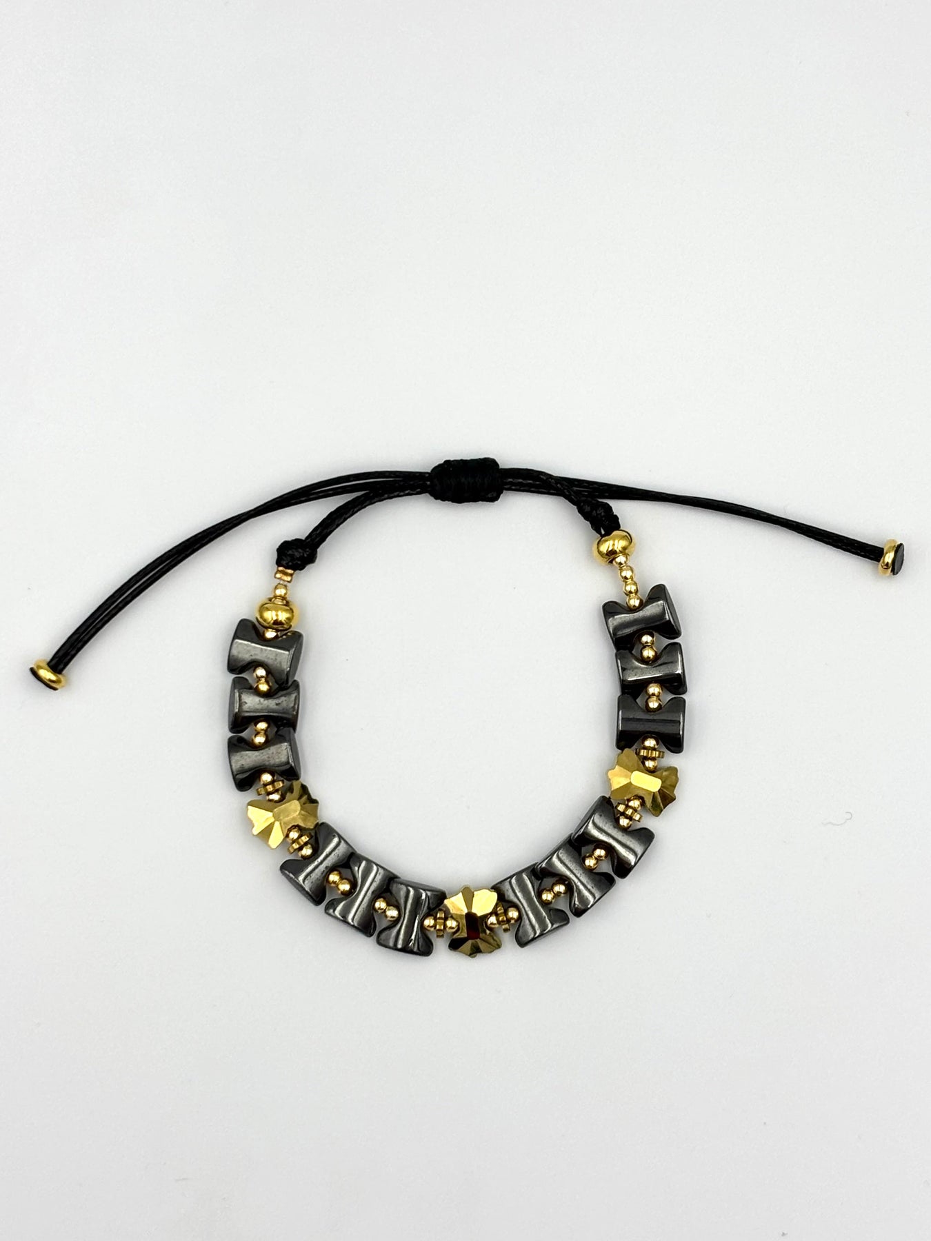 Βραχιόλι Αλκμήνη χειροποίητο σε Μαύρο Χρώμα, και χρυσές λεπτομέρειες