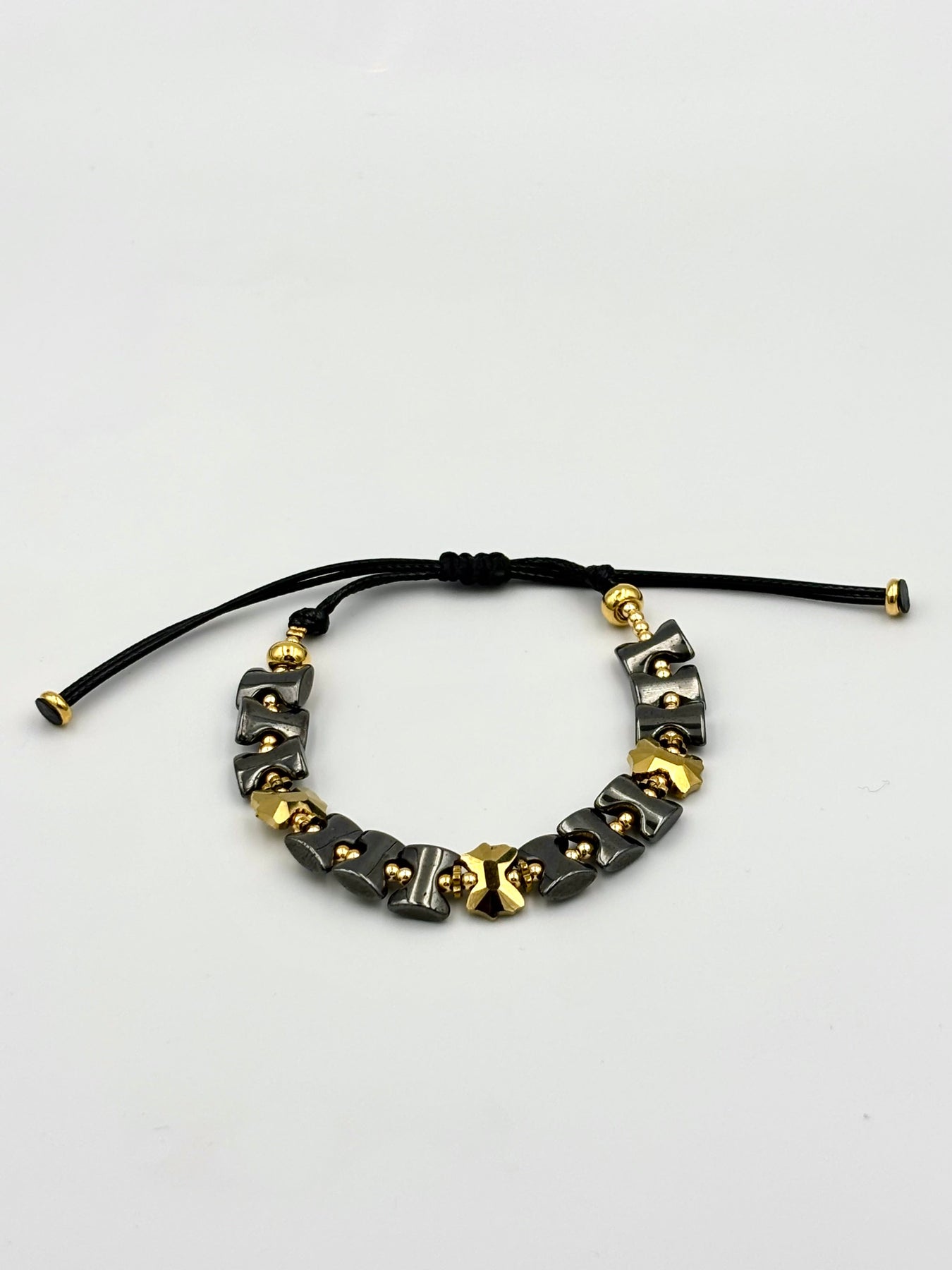 Βραχιόλι Αλκμήνη, Χειροποίητο με κομψές μαύρες πέτρες Τιτανίου και εκλεπτυσμένες Χρυσές Λεπτομέρειες που προσδίδουν διαχρονικότητα και πολυτέλεια. Ένα ιδιαίτερο αξεσουάρ που συνδυάζεται εύκολα με κάθε στιλ, ιδανικό για καθημερινές εμφανίσεις αλλά και για πιο επίσημες περιστάσεις. Ρυθμιζόμενο και άνετο στον καρπό, χαρακτηρίζεται από υψηλή ποιότητα κατασκευής και προσοχή στη λεπτομέρεια. Το Βραχιόλι Αλκμήνη αποτελεί εξαιρετική επιλογή για όσους αναζητούν ένα μοντέρνο κόσμημα με διακριτή λάμψη, ενώ μπορεί να γίνει και μία υπέροχη επιλογή δώρου για αγαπημένα πρόσωπα.
