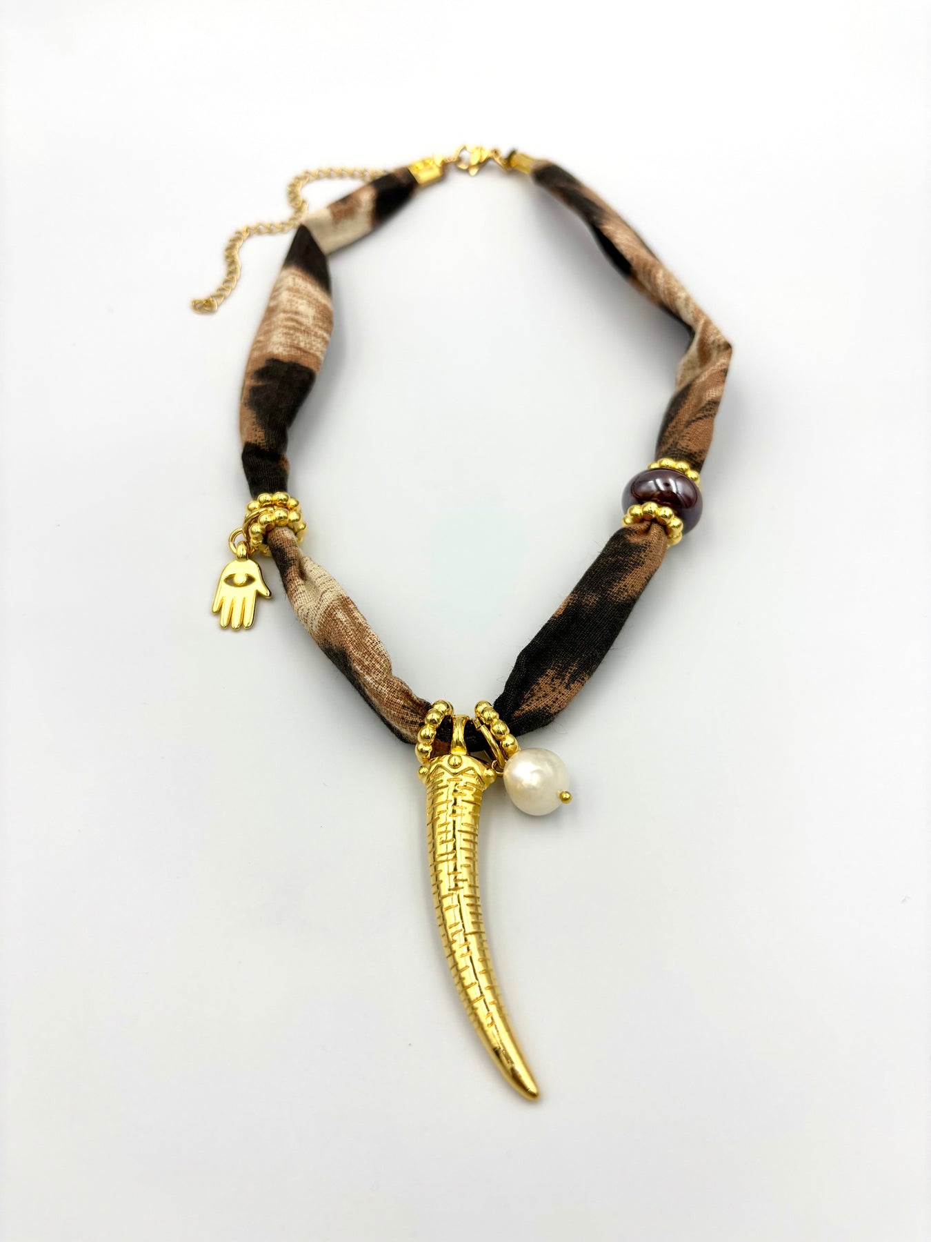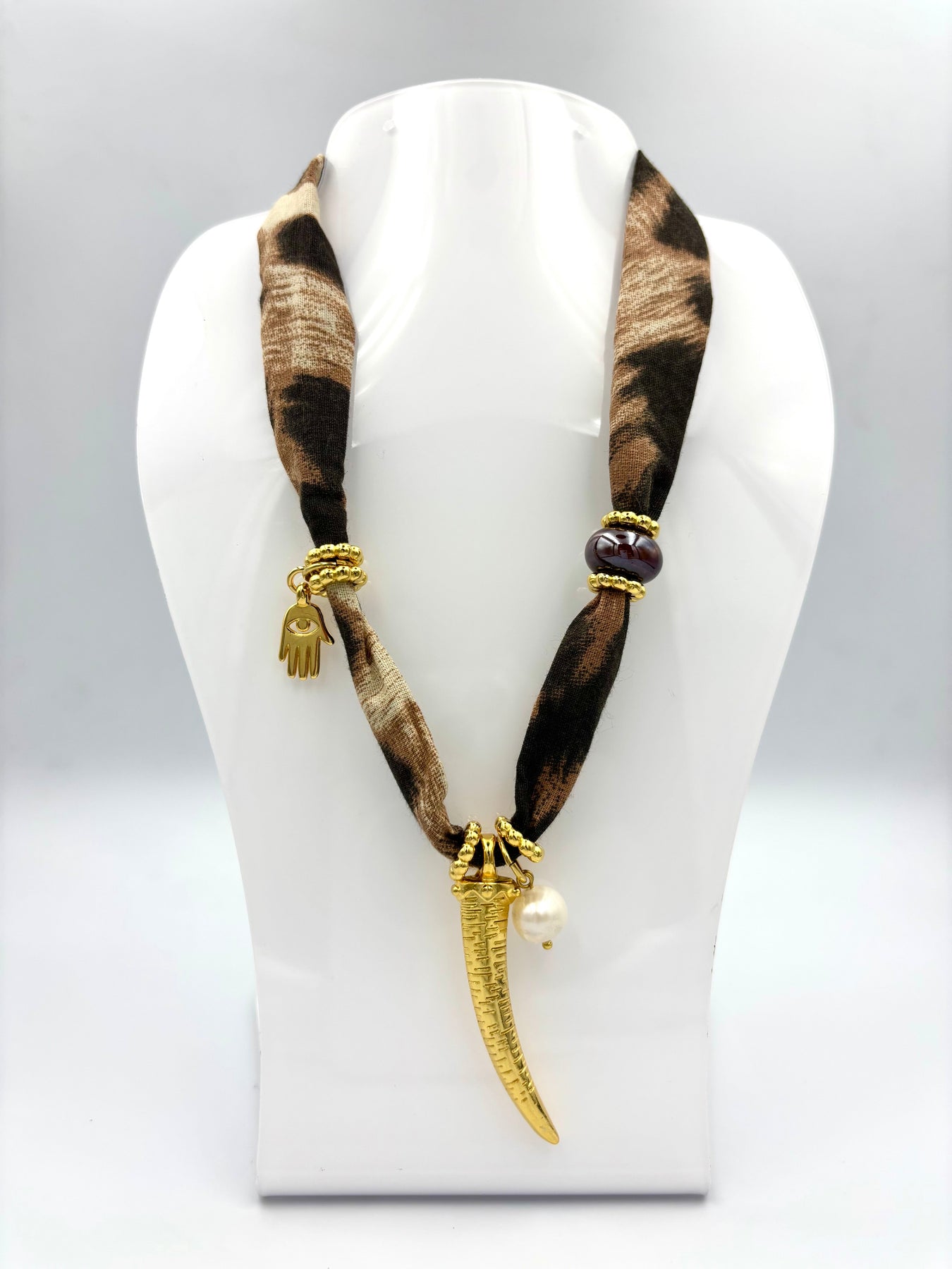 Κολιέ Δανάη με Φουλάρι και Χρυσές Λεπτομέριες